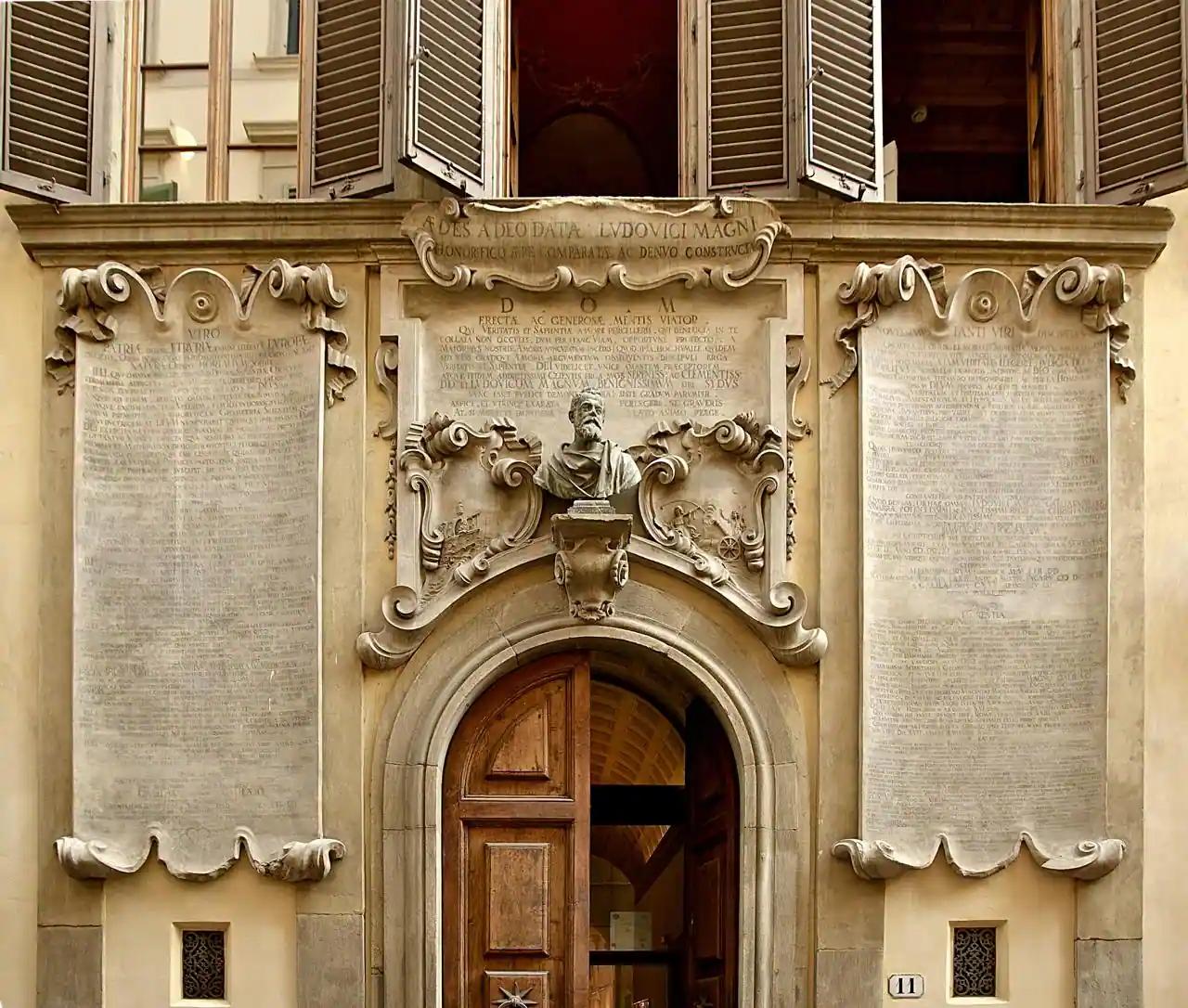 (el Palazzo Viviani con un busto de Galileo y placas alusivas dedicadas por Viviani al sabio italiano)