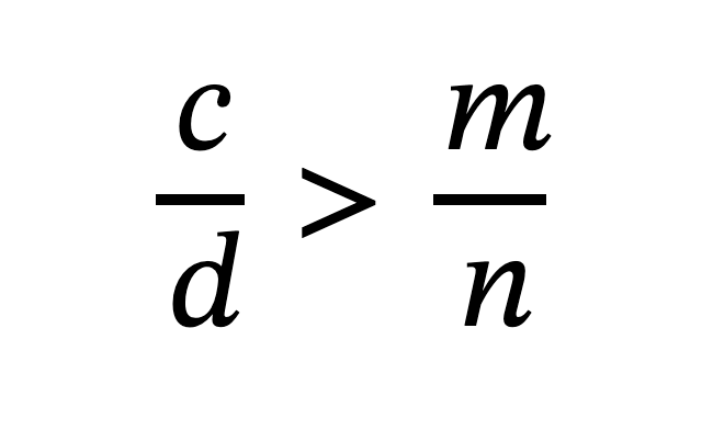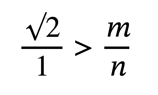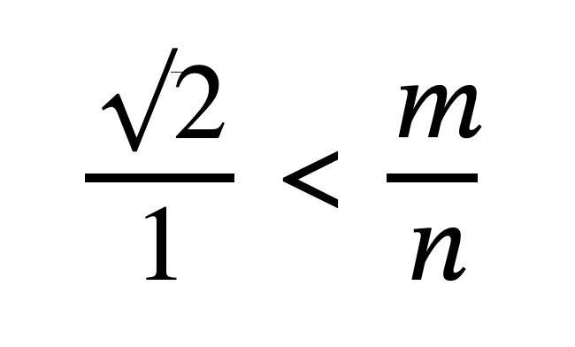 En otras palabras, si el racional 𝑚/𝑛 está por arriba de 2‾√ , y entonces también está por arriba de 𝑐:𝑑 , o si 𝑚/𝑛 está por debajo de 2‾√ , también está por debajo de 𝑐:𝑑 c : d , entonces las dos razones, 2‾√:1 2 : 1 y 𝑐:𝑑 c : d son iguales.