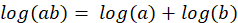 la que expresamos diciendo que el logaritmo de un producto de dos números es la suma de sus logaritmos respectivos. Es decir, si tenemos una tabla impresa de logaritmos y queremos multiplicar dos números a y b, miramos en la tabla cuáles son sus logaritmos y los sumamos. Después volvemos a mirar en la tabla para encontrar el número con un logaritmo igual a aquella suma y así obtenemos el producto ab. La multiplicación se convierte de esa manera en adición acompañada de consulta de tablas de logaritmos. Yo aún tuve mis tablas de logaritmos en la secundaria. Las vendían en las papelerías.