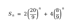 Es decir, en el primer paso del algoritmo para generar la esponja de Menger, la superficie total pasa de 6 a 8, un aumento del 33 %. En los pasos subsecuentes tenemos que ser más cuidadosos al contar, porque cada minicubo no expone sus seis lados al “aire”. Hay caras de los minicubos que están en contacto entre sí y que no debemos agregar al cálculo del área total. Se puede demostrar, sin embargo, que en n iteraciones del algoritmo la superficie de la esponja provisional así generada tiene una superficie igual a