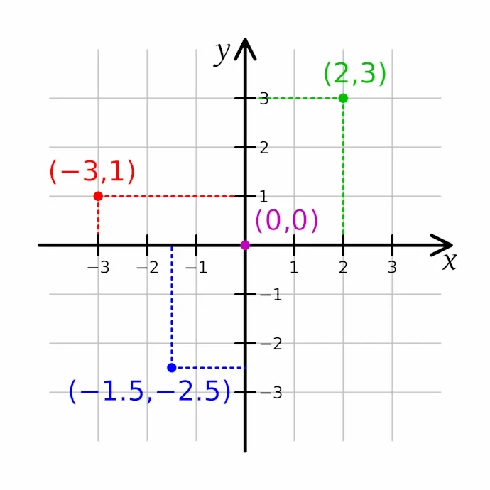 A pesar de que esto es ya algo que los niños aprenden en las escuelas, la verdad es que tomó mucho tiempo poder llegar esta representación llamada “cartesiana” en las matemáticas (en honor a René Descartes). Esto es la base de lo que se llama la “geometría analítica”, que nos permite graficar funciones y, lo dicho, convertir problemas geométricos en problemas de álgebra.