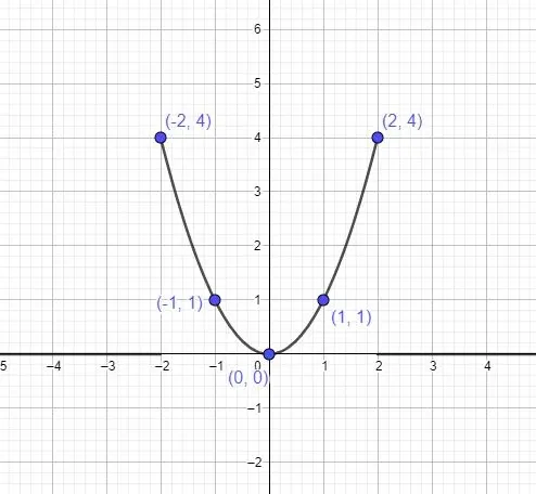 Ya con un sistema de referencia cartesiano es posible hablar de la gráfica de una función, por ejemplo, la función cuadrática . La imagen de esta función es una curva llamada parábola. Utilizando la función, cada valor de “x” obtenemos uno de “y” y los puntos (x,y) los vamos graficando de acuerdo con los ejes cartesianos, como indica la figura.