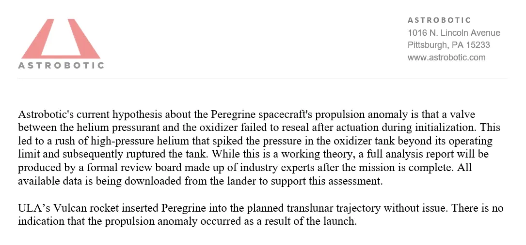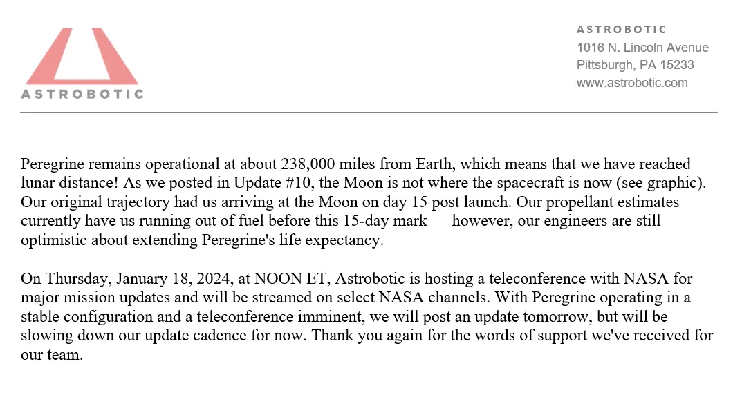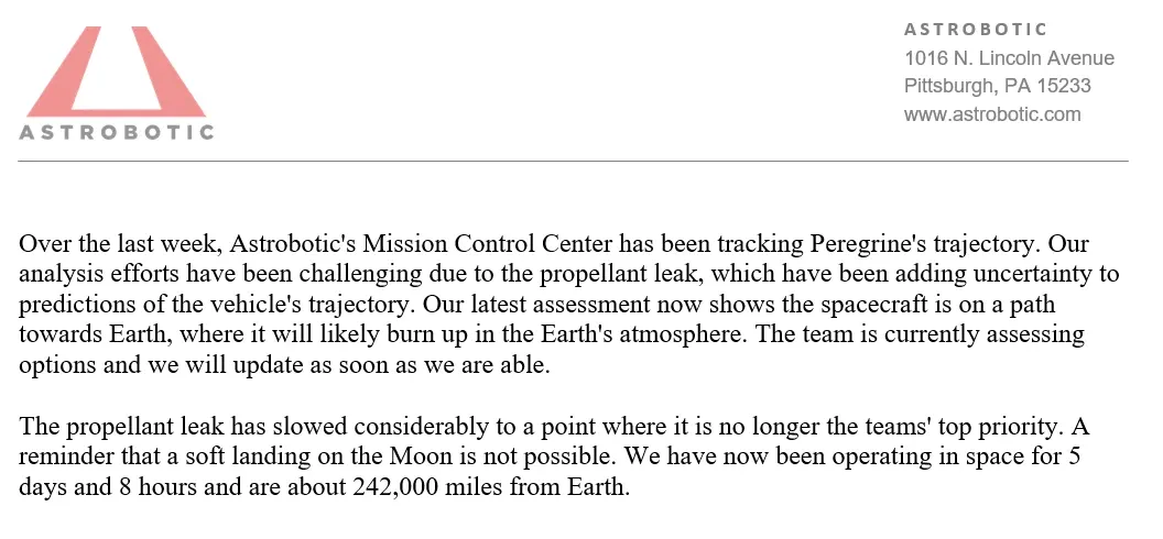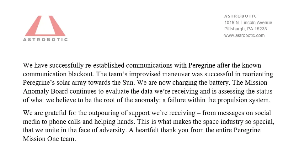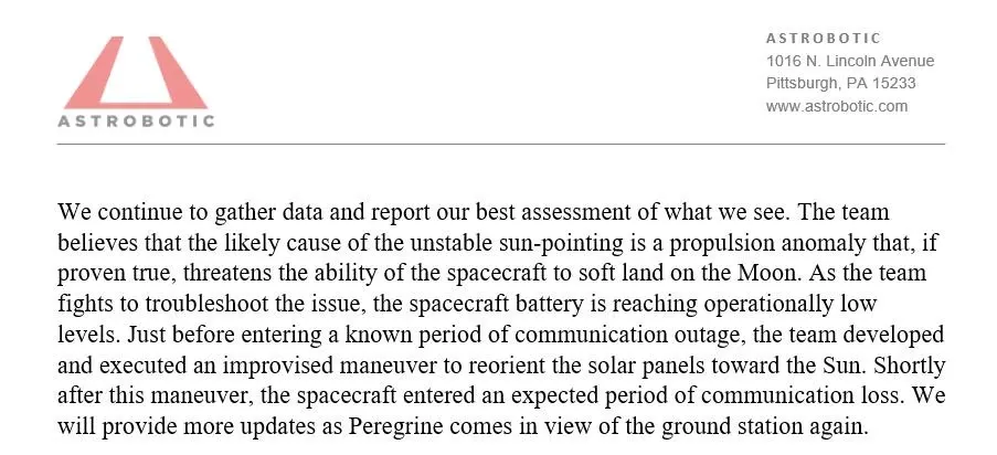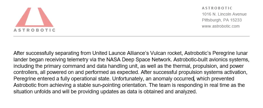 Mantente al día con los comunicados de la empresa Astrobotic en relación