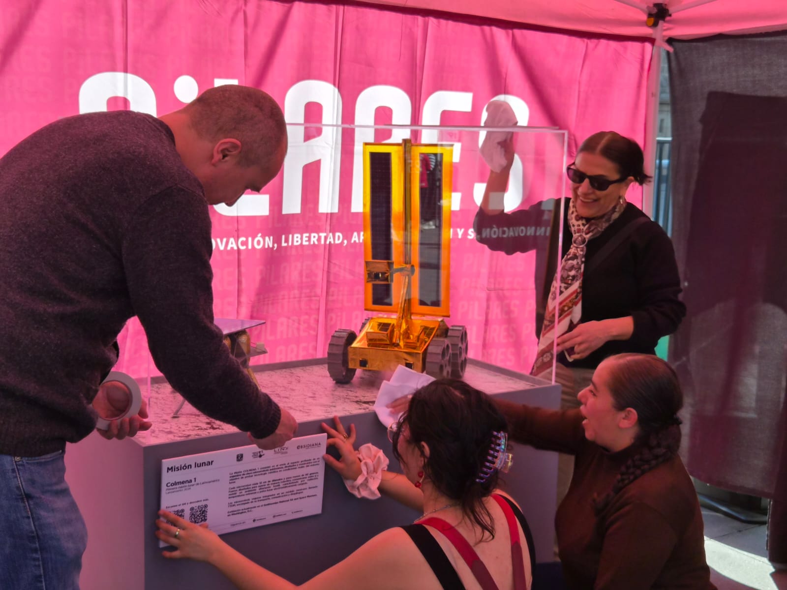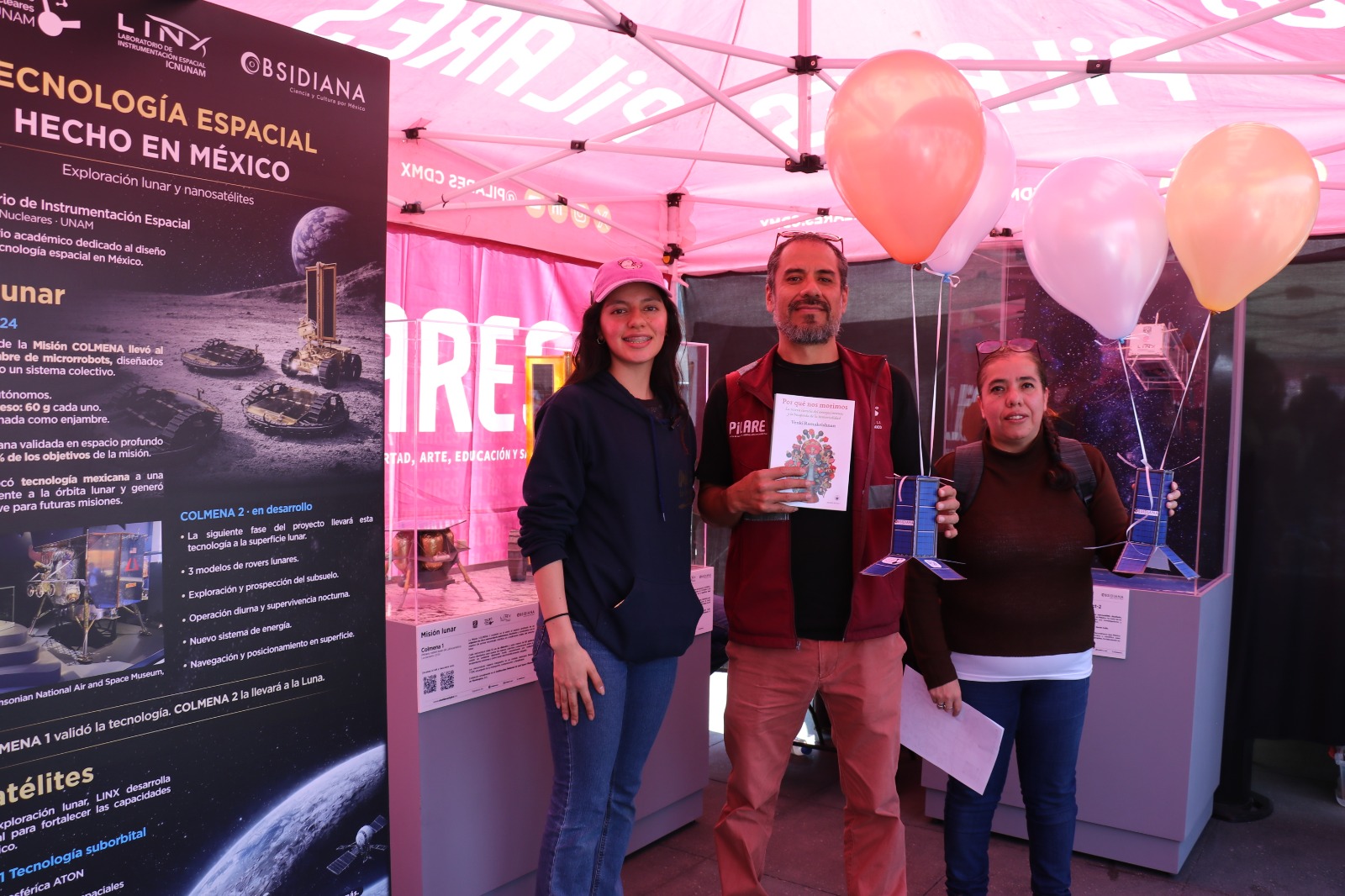 Asimismo, se presentó el Museo Itinerante de la Misión Espacial Colmena, que incluyó una charla y demostración sobre la primera misión lunar mexicana. En este espacio participó el Dr. Gustavo Medina Tanco, investigador líder del proyecto y director del Laboratorio Linx, quien dialogó con las y los asistentes y compartió el alcance científico y tecnológico de esta histórica misión.
