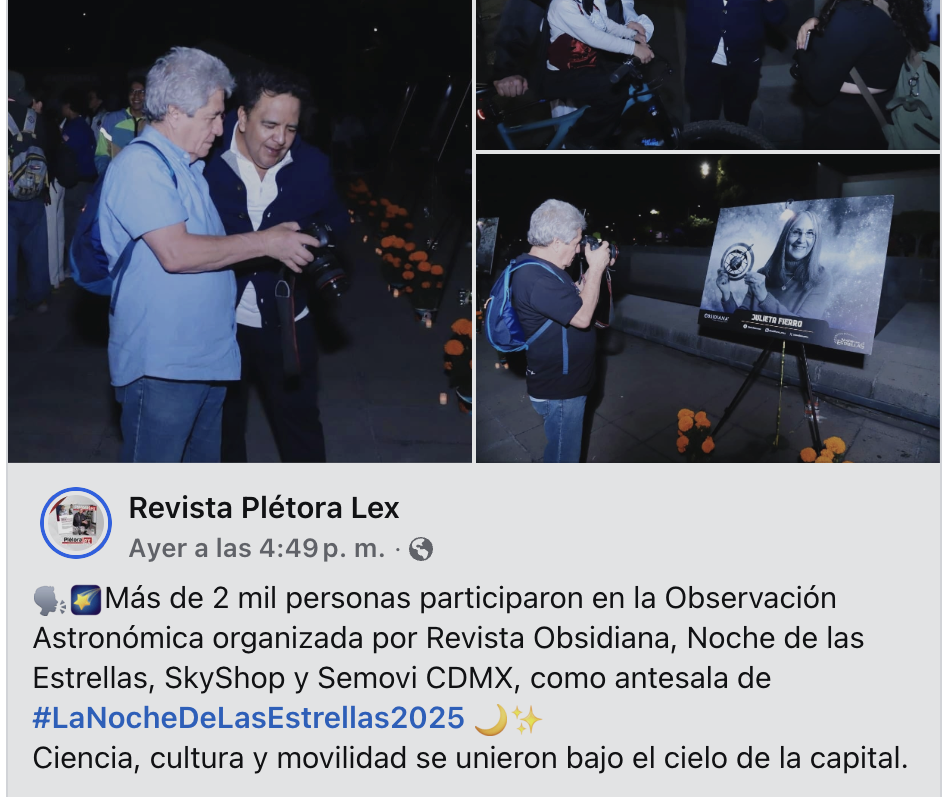 El evento se llevó a cabo en la explanada del Museo Nacional de Antropología, donde el tradicional Paseo Nocturno “Muévete en Bici” se transformó en una experiencia única que combinó ciencia, arte y movilidad sustentable. Familias enteras, ciclistas, curiosos y amantes del cielo se reunieron para observar los astros, participar en actividades educativas y disfrutar del ambiente festivo.