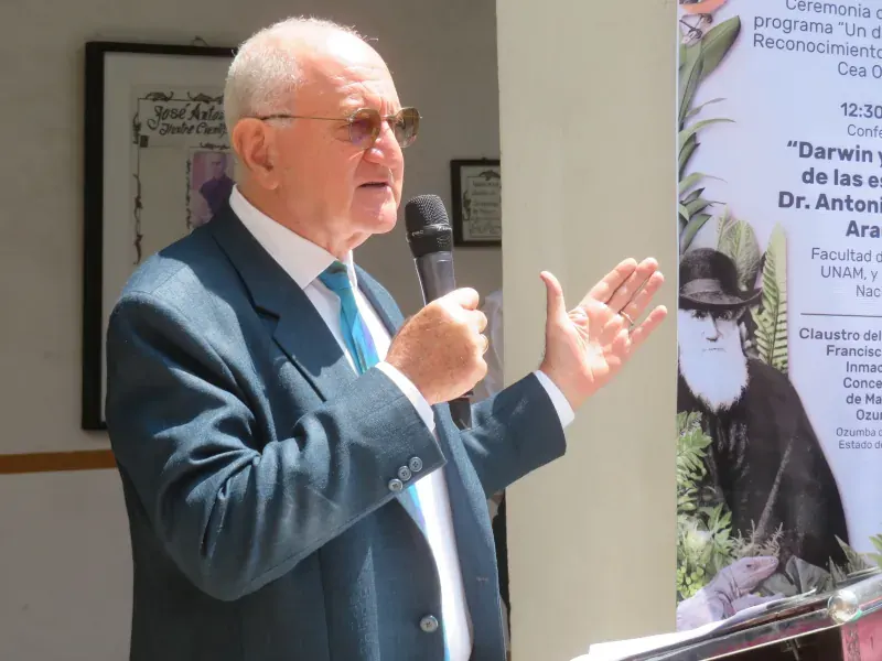 Tras la ceremonia, se llevó a cabo la primera actividad del programa “Un día en la ciencia”: la conferencia “Darwin y el origen de las especies”, a cargo del doctor Antonio Lazcano Araujo, profesor e investigador de la Facultad de Ciencias de la UNAM.