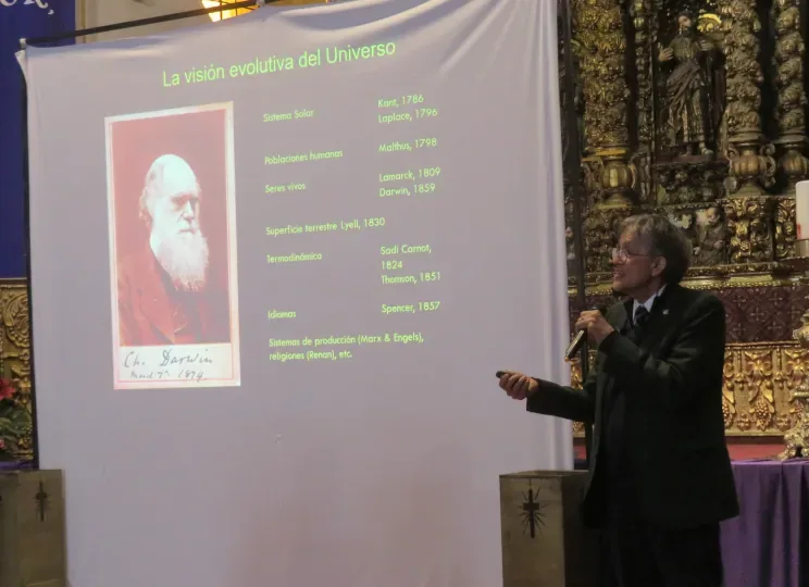 El doctor Lazcano, con su característico humor, llevó a los asistentes a navegar junto con él y Charles Darwin en el Beagle, para recorrer los mares y recordar aquella expedición científica que duró cinco años y vio nacer la teoría de la evolución. Y mientras Lazcano narraba las maravillas que Darwin fue observando y estudiando, compartió fragmentos de cartas, ilustraciones, apuntes y fotografías para conocer mejor los grandes descubrimientos, pero también los inconvenientes a los que se enfrentó Darwin (el naturalista hipocondríaco) durante su travesía.