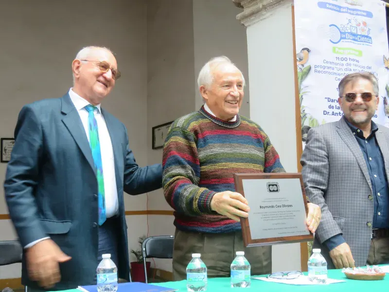 Posteriormente, la AMC, a través de su Presidente, José Seade Kuri, entregó un merecido reconocimiento a Raymundo Cea Olivares, distinguido científico mexicano especializado en química orgánica, por su destacada labor como director del programa “Domingos en la Ciencia”. Seade reconoció que su dedicación deja una huella invaluable en la difusión de la cultura científica en nuestro país.
