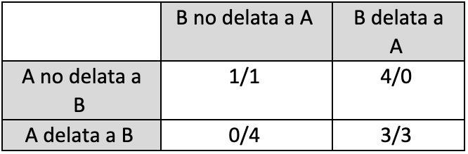 Tabla de recompensa/castigo para dos prisioneros A y B