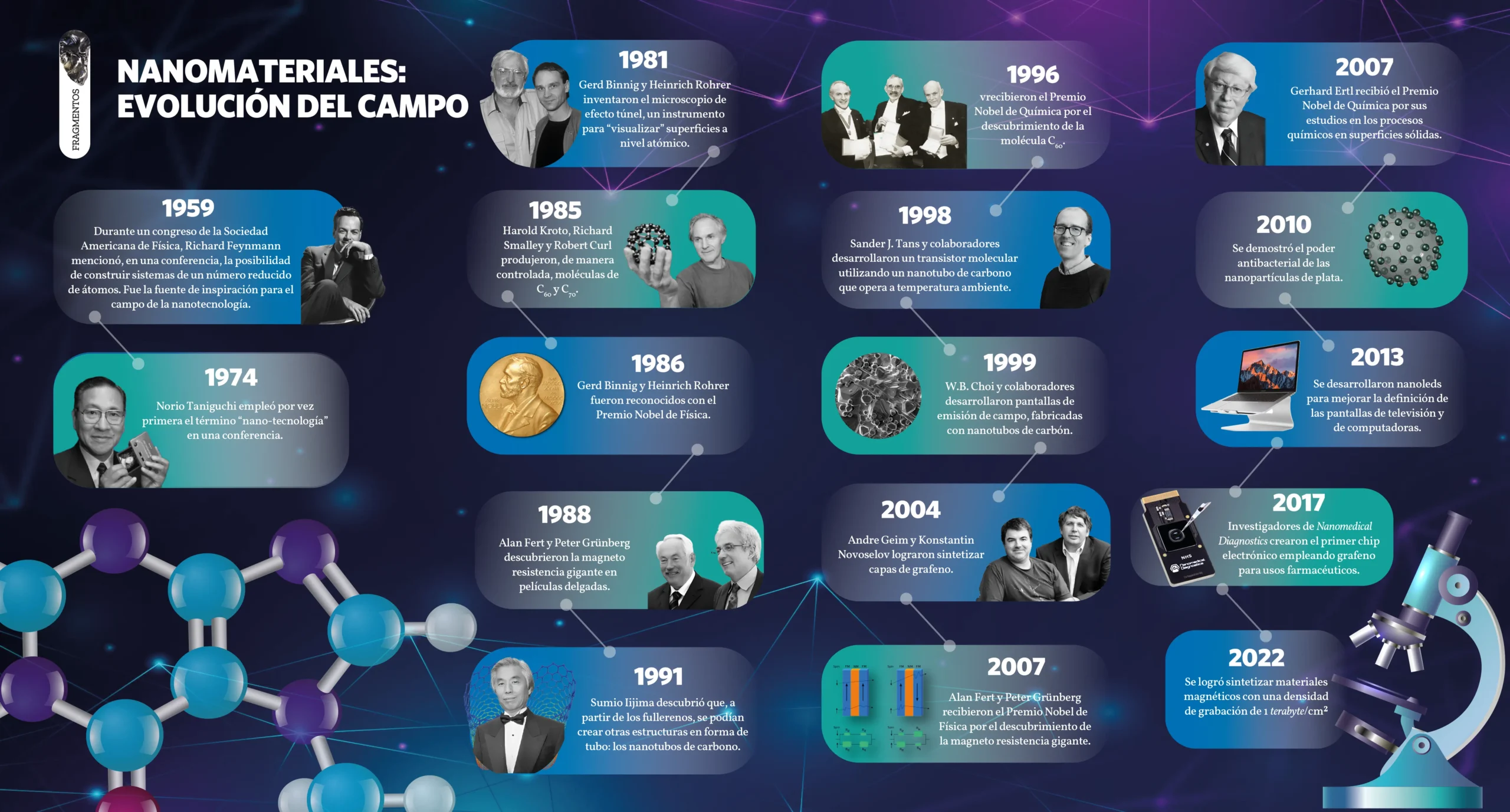 La posibilidad de construir sistemas de un número reducido de átomos inspiró el campo de la nanotecnología. ¿Hasta dónde ha llegado esta disciplina? ¡Descúbrelo en esta cronología!