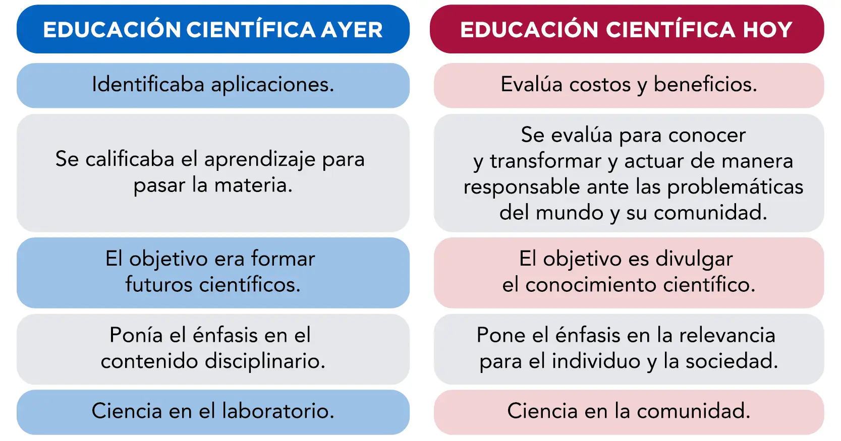En consecuencia, la educación química daba prioridad al conocimiento; el maestro enseñaba y el alumno asimilaba como si los conocimientos fueran paquetes de información que entran directo al cerebro. Se enseñaba química desde la química, por la química y para la química, pero no importaba el uso que se le daba a esos conocimientos ni el impacto social y medioambiental del desarrollo científico y tecnológico.