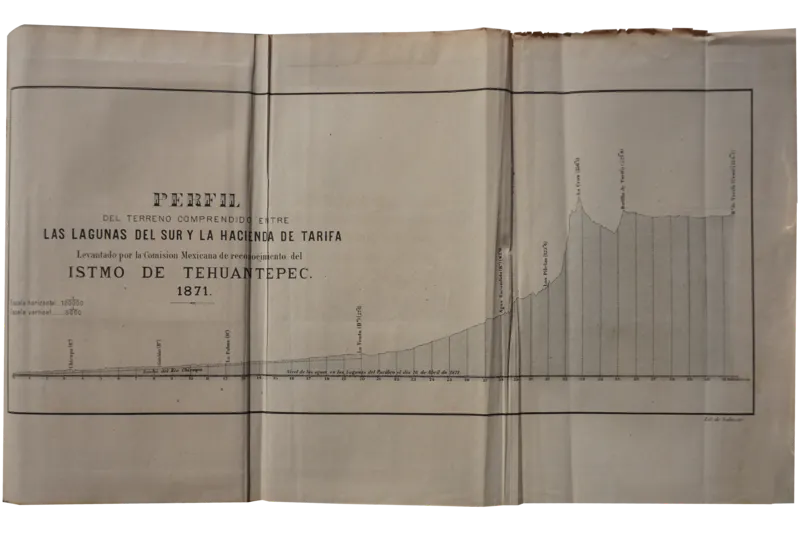 La Comisión Mexicana levantó estudios cartográficos como este para evaluar la viabilidad de dichas infraestructuras. Este conjunto de mapas sentó las bases para la construcción del Ferrocarril Transístmico, que finalmente se inauguró en 1907 como una solución al transporte interoceánico.