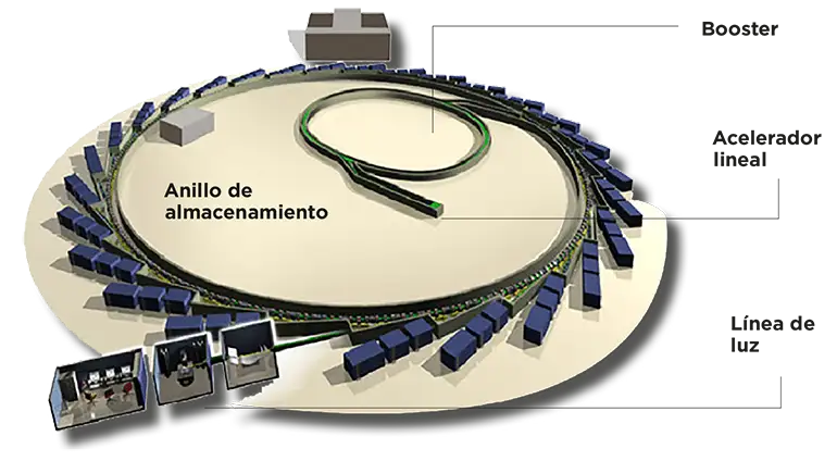 Un sincrotrón es una máquina gigantesca que acelera partículas cargadas —generalmente electrones— hasta velocidades cercanas a la de la luz dentro de una trayectoria circular cerrada. Al moverse en ese anillo, las partículas emiten radiación electromagnética que abarca desde rayos X hasta luz infrarroja. Esta radiación, conocida como luz de sincrotrón, se convierte en una herramienta excepcional para observar materiales con una resolución extraordinaria, desde moléculas biológicas hasta dispositivos electrónicos.