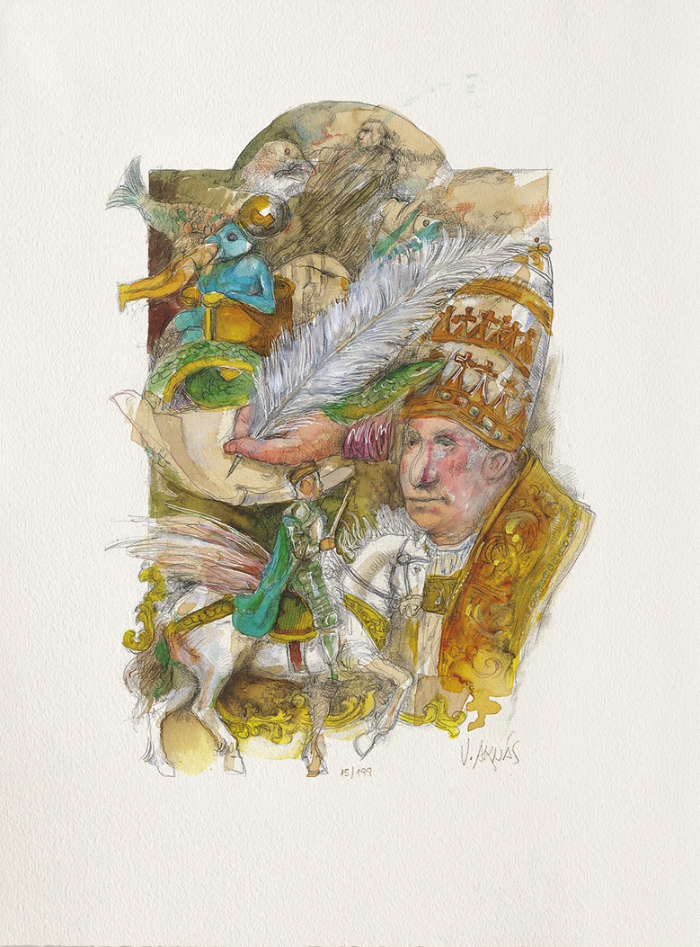 Pintor con un amplio reconocimiento también en el dibujo de ilustración y del cómic. Nace en Pamplona, España, en 1942.